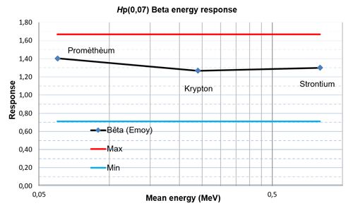 •Hp(0.07)β相对响应,对Pm-147,Kr-85和Sr-90/Y-90在±20%(*)以内 (*)相对于典型曲线(β能量相应) |